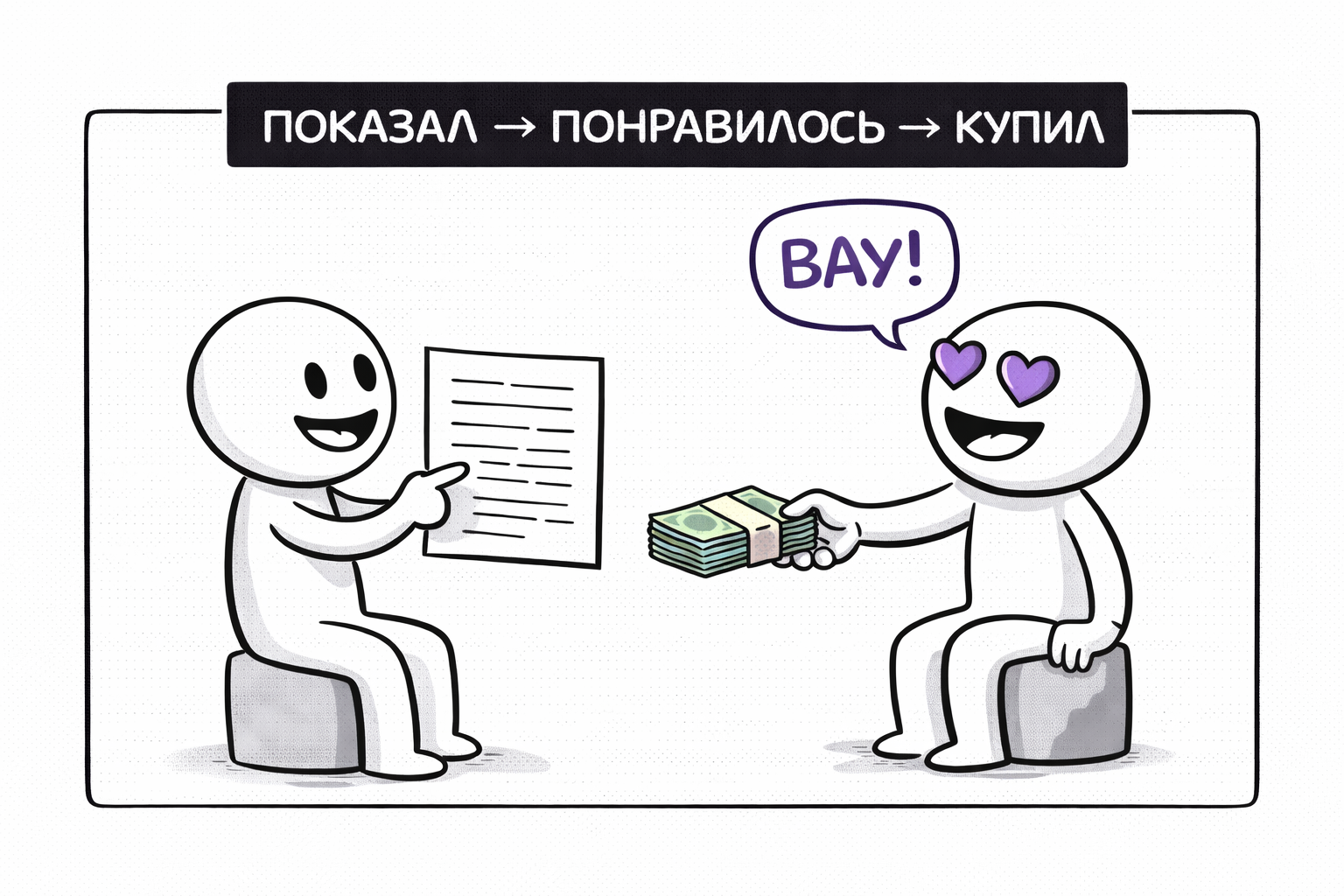 Показал клиенту, чем занимаешься → Ему понравилось → Он купил.